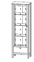 1 распашная стеклянная дверь, за которой расположены отделения с полками