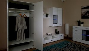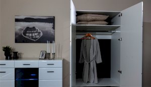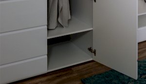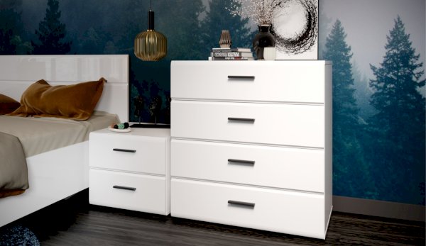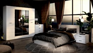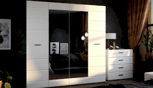 Спальня Йорк отличается стильным европейским дизайном. Глянцевые белые фасады High Gloss из МДФ отражают световые потоки, спальня выглядит динамично, воздушно и легко, что актуально для небольших помещений. Строгая горизонтальная фрезеровка украшает фасады, а контрастные черного цвета ручки и задняя стенка делают спальню особенно выразительной. Спальня универсальна, сочетается с любой мебелью и отделкой. Состоит из отдельных модулей, благодаря чему можно легко подобрать мебель для комнаты любого размера. Выполнена из экологически безопасных и надежных материалов.