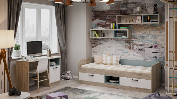 Цвет: Дуб Крафт серый/ Белый /Серо-голубой