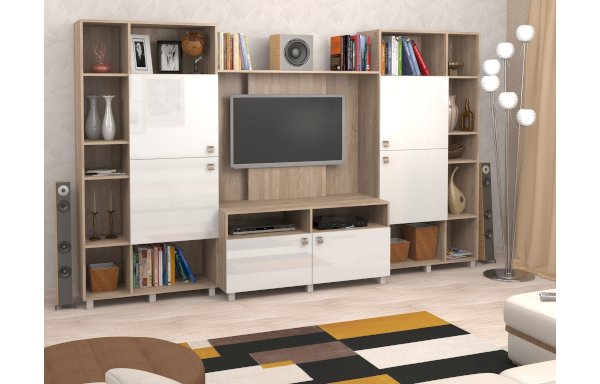 Данное изображение представлено в следующих цветах: корпус ЛДСП - Дуб Сонома, фасады МДФ - Белый глянец.