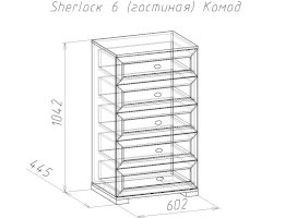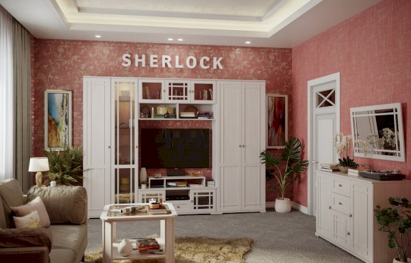 Широкий выбор модулей коллекции SHERLOCK помогает создать уютную гостиную с комфортным рабочим местом, что очень важно для маленькой квартиры. Вместительный 15 Стол письменный можно расположить между шкафами и навесить над ним 4 Шкаф навесной на любой удобной для Вас высоте. 5 Тумба МЦН – отличный вариант не только для хранения вещей, но и для размещения на ней телевизора. Шариковые направляющие тумбы обеспечивают плавность хода выдвижных ящиков. Большой выбор шкафов коллекции SHERLOCK дополнит и то, что 10 Шкаф угловой можно выбрать либо с фасадом Стандарт, либо с фасадом Зеркало. Все фасады модулей коллекции декорированы классическим переплетом из МДФ.