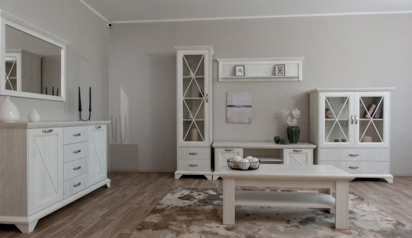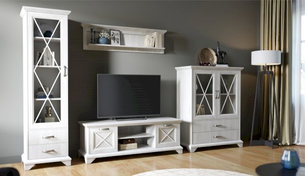 Вместительный комод Лорена в стиле неоклассика создает уютную атмосферу в интерьере гостиной или спальни. Белые фасады с фактурой и рисунком натурального дерева наполняют комнату светом, делают ее просторнее. Металлические ручки цвета состаренного серебра придают изысканность, а фигурные ножки и декоративный карниз подчеркивают стилистику коллекции. За прозрачными витринами будут идеально смотреться красивая посуда, антикварный декор и сувениры. В выдвижных ящиках на телескопических направляющих удобно хранить текстиль, посуду. Выполнен из экологичных материалов.