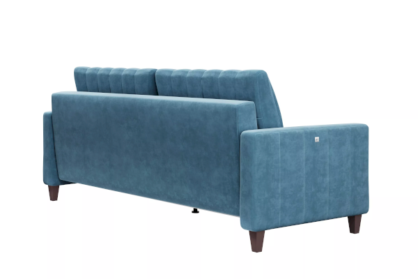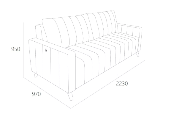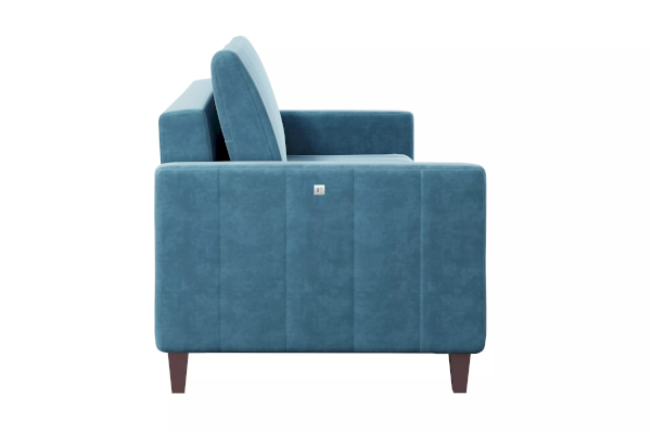 Диван располагает комфортным посадочным местом, а боковина оснащена современным решением для оперативной зарядки гаджетов. Вертикальная стёжка на приспинных подушках, сиденье и подлокотниках является изюминкой дивана.