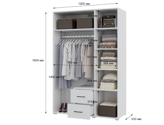 Наполнение шкафа | штанга / выдвижные ящики |