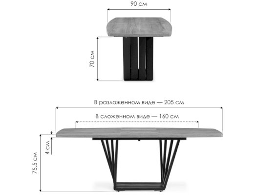 Длина в разложенном виде: 2050 мм