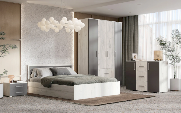 Цвет фасада: Дуб Крафт Белый/Графит