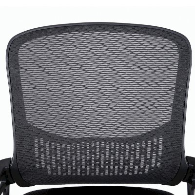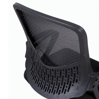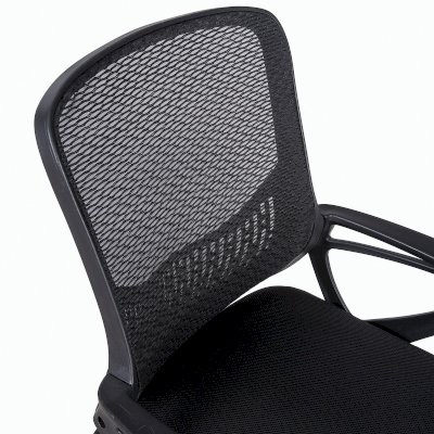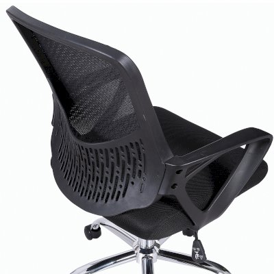 Спинка кресла выполнена из прочного сетчатого акрила с оригинальным "узором". Материал обладает высокой воздухопроницаемостью, легко чистится, способен подстраиваться под физиологические изгибы спины, при этом сохраняет форму и не растягивается. Залогом комфортного использования кресла также является эргономичная форма надёжного пластикового каркаса.