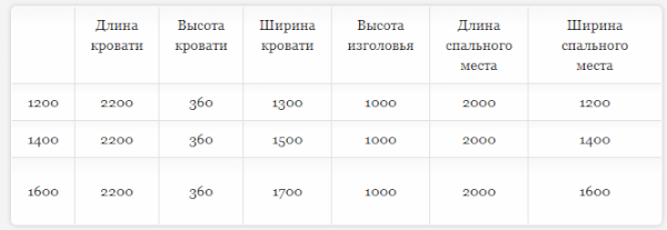 Кровать доступна в 3-х размерах:  1200, 1400, 1600 мм.