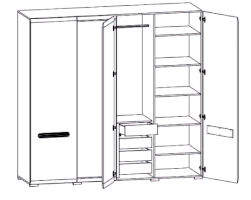 Эта модель большого шкафа серии Ацтека, выполненного в современном минималистичном стиле – полноценная система хранения гардероба, способная полностью избавить от необходимости в других шкафах и комодах для вещей. Это очень удобно и практично, особенно для небольших помещений, где нет места для большого количества мебели. Стильный внешний вид модели украсит и освежит собой любое пространство, сделает его более светлым.