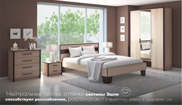 Спальня Эшли – это воплощение современного европейского стиля, в дизайне которой каждый модуль имеет своё практичное назначение. Благодаря сочетанию цветов светлого дуба с контрастными планками, Вы сможете создать яркий и функциональный интерьер, отражающий ваши вкусы и предпочтения. Спальня – это сердце дома, так как она часто служит сразу для отдыха, гардероба и работы. Система Эшли состоит из 15 модулей, которые позволяют выбрать все нужные элементы мебели в едином стиле. Кроме этого, мебель в спальне напрямую влияет на качество сна и наше здоровье, поэтому всё должно быть максимально безопасным и экологичным. При создании системы Эшли реализованы в полной мере «зеленые» принципы. Система выполнена из высококачественных материалов.