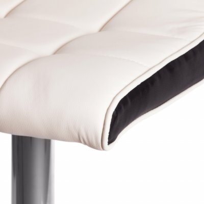 Стильный барный стул BARBER из коллекции Modern позволит привлечь внимание и сделать яркий акцент в вашем интерьере. Подчеркнутый цветовой контраст изделия и его лаконичные формы идеально соответствуют концепции современного стильного пространства. Простая форма, стеганая обивка из белой и черной экокожи и металлическая хромированная ножка придают стулу особую привлекательность, оригинальность и визуальную легкость. Удобная подставка для ног, механизм регулировки высоты, мягкое сиденье и спинка позволяют комфортно расположиться на длительное время. Металлическая ножка и круглое основание придают модели большую устойчивость.