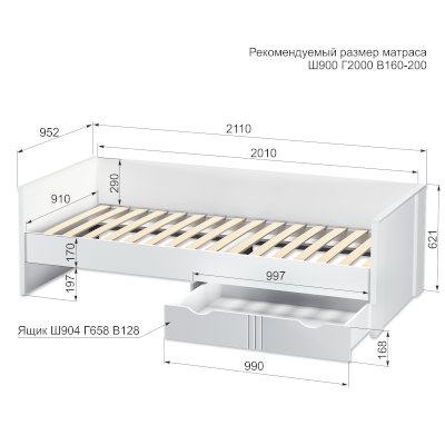 Рекомендуемая высота матраса: 16-20 см