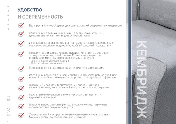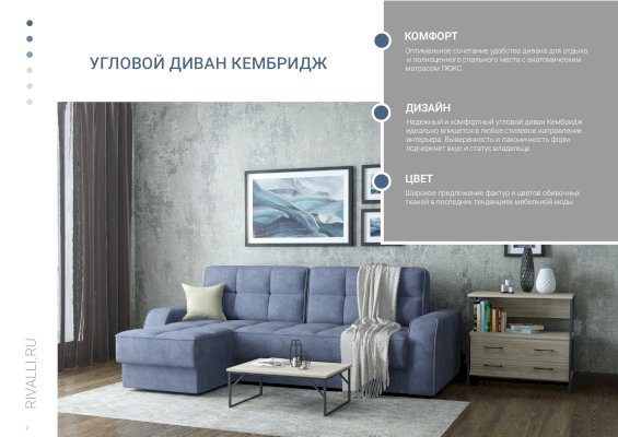 Угловой диван Кембридж (Rivalli) - за 140 972 руб. в Ханты-Мансийске. Купите на сайте mebelmarket-hanty-mansijsk.ru или по телефону 8(800)505-30-63 уже сегодня! Уточнить наличие, комплектацию, актуальную цену можно бесплатно у менеджера ежедневно. Закажите Угловой диван Кембридж (Rivalli) до конца акции! Доступна покупка в кредит, рассрочку. Доставим со склада или на заказ.