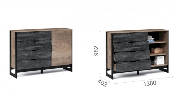 Комод 1 дверца и 4 ящика Стокгольм