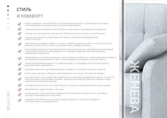 Прямой диван Женева (Rivalli)