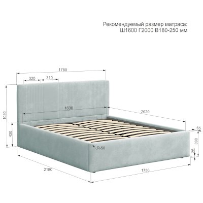 Рекомендуемая высота матраса: 18-25 см
