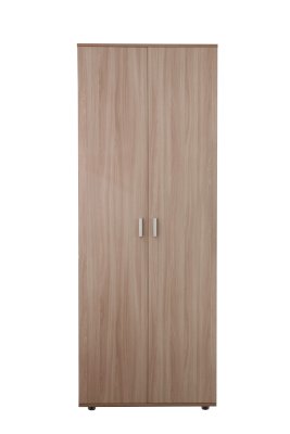 Шкаф двухдверный отличается простотой и лаконичностью оформления, внутри вместительные полки.