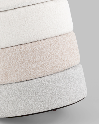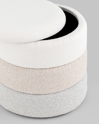 Изящная модель пуфа в мягкой обивке из ткани букле, которая дополнит интерьер в современном стиле. Обивка украшена горизонтальной строчкой для придания большей мягкости и уюта. Под сидением имеется ящик для хранения различных мелочей. В основании предусмотрены специальные подпятники, которые делают пуф более устойчивым и предотвращают скольжение.