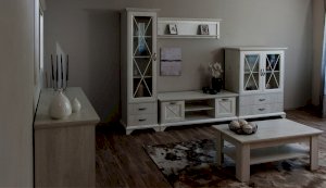 Тумба Лорена – функциональный элемент гостиной в стиле неоклассика, оснащена всем необходимым для удобства использования. Два открытых отделения и полки за закрытыми фасадами помогут разместить документы, медиа технику, пульты и другие необходимые вещи. Выполнена из экологичных материалов.