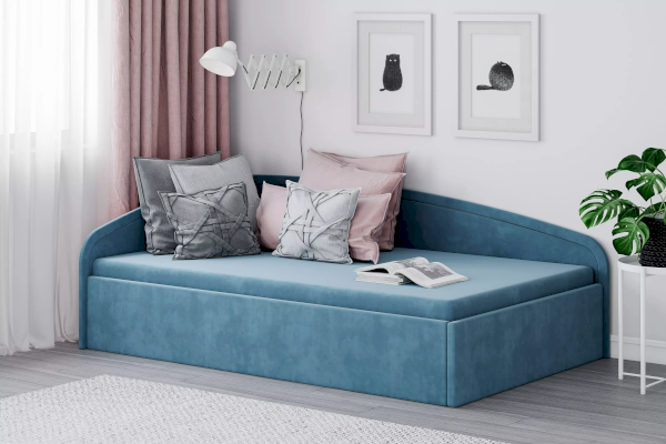 Тахта оборудована односторонним несъемным матрасом с пружинным подъемным механизмом и вместительным ящиком для белья, что экономит пространство и идеально подходит для хранения различных вещей.