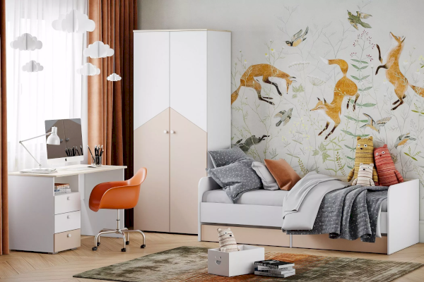 Одним из важнейших принципов развития ребенка является обустройство его рабочего места, где школьник сможет выполнять уроки, заниматься творчеством и любимым хобби. Письменный стол НМ 041.40 «Банни» с тумбой позволит оформить в спальне рабочий уголок в скандинавском стиле. Тумбу с ящиками возможно разместить как в левой, так и в правой части изделия в зависимости от предпочтений ребенка.