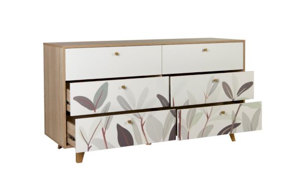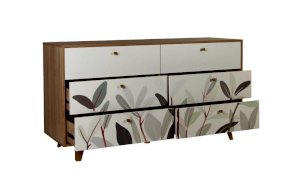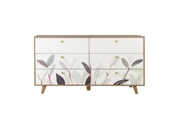 Принт на фасадах комода создан нашими дизайнерами вручную. Рисунок нанесен при помощи технологии УФ-печати. Принты не выцветают со временем и устойчивы к механическому воздействию.