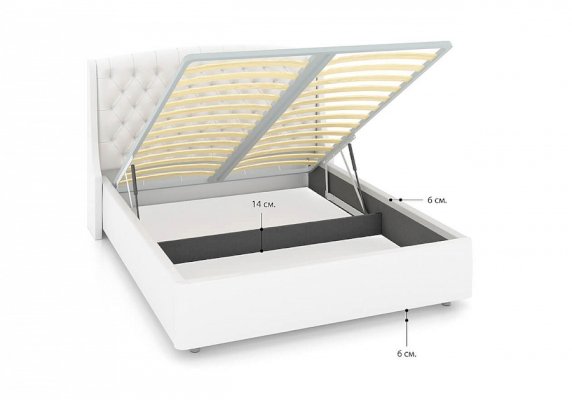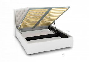 Стильная и комфортная интерьерная кровать. В комплект кровати входит кроватное основание. Кровать выглядит гармонично как в классическом интерьере, так и в современном, что открывает простор для смелых дизайнерских решений. Подъемный механизм и бельевой короб делают кровать практичной и функциональной.