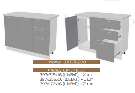 ШН3Я400 Шкаф нижний с 3 ящиками