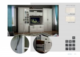 Новый Свет, знаменитый золотом и пряностями, авантюристами и первооткрывателями, обогатил мировую культуру ещё и своим особенным интерьерным стилем, воплощенным в гостиной «Ливерпуль». Сочетание лёгкой древесной структуры и светлого тёплого оттенка удачно имитируют крашеный массив. Современная фурнитура обеспечивает надёжное функционирование всех соединений. Резной карниз и броская лицевая фурнитура подчеркивают изысканность образа. Статусный вид гостиной «Ливерпуль», несомненно, не оставит равнодушными ваших гостей.