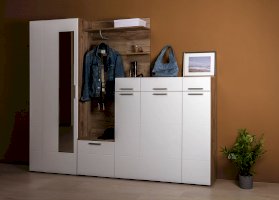 Универсальный модуль этой прихожей может быть дополнен шкафом для одежды.