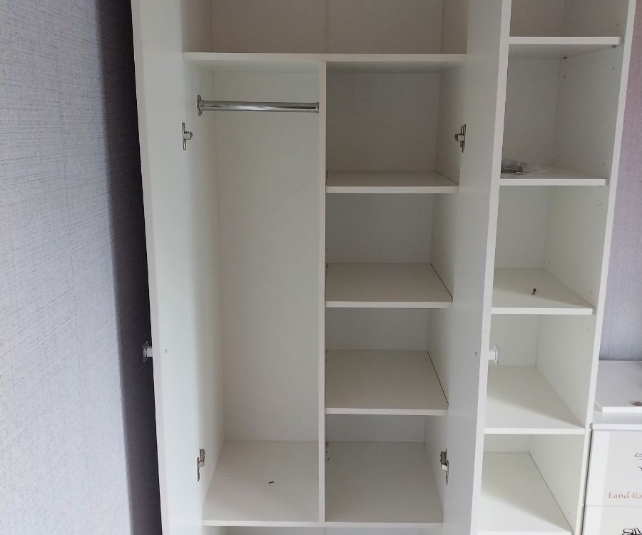 Шкаф имеет полки под белье и штангу для одежды.