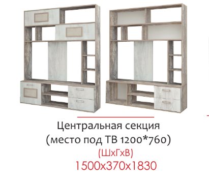 Размер ниши под ТВ: 1200х760 мм